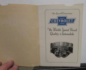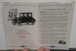 Original, Chevrolet Superior Models sales brochure (Catalog) with illustrations, FOBs and specifications. Models include Roadster, Touring, De Luxe Touring, Utility Coupe, 4-passenger Coupe, Sedan, and illustration of chassis. Good condition with minor wear, blemishing and soiling [see photos]. The top edge has minor damage. Dated 4-24