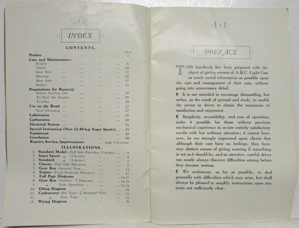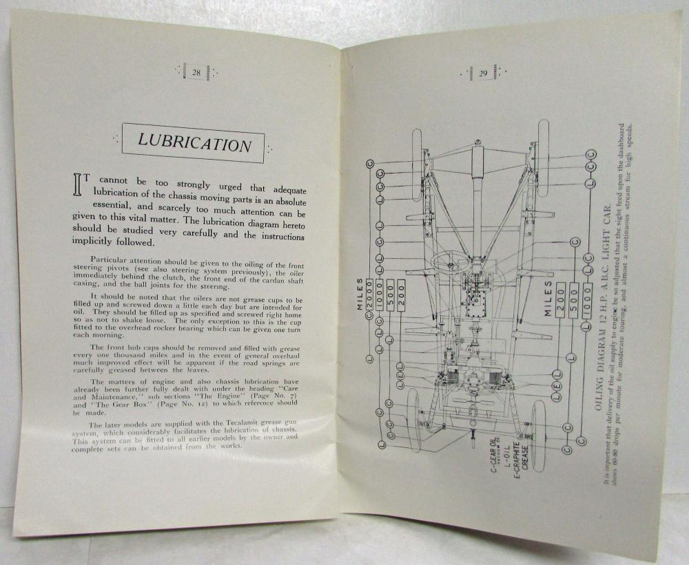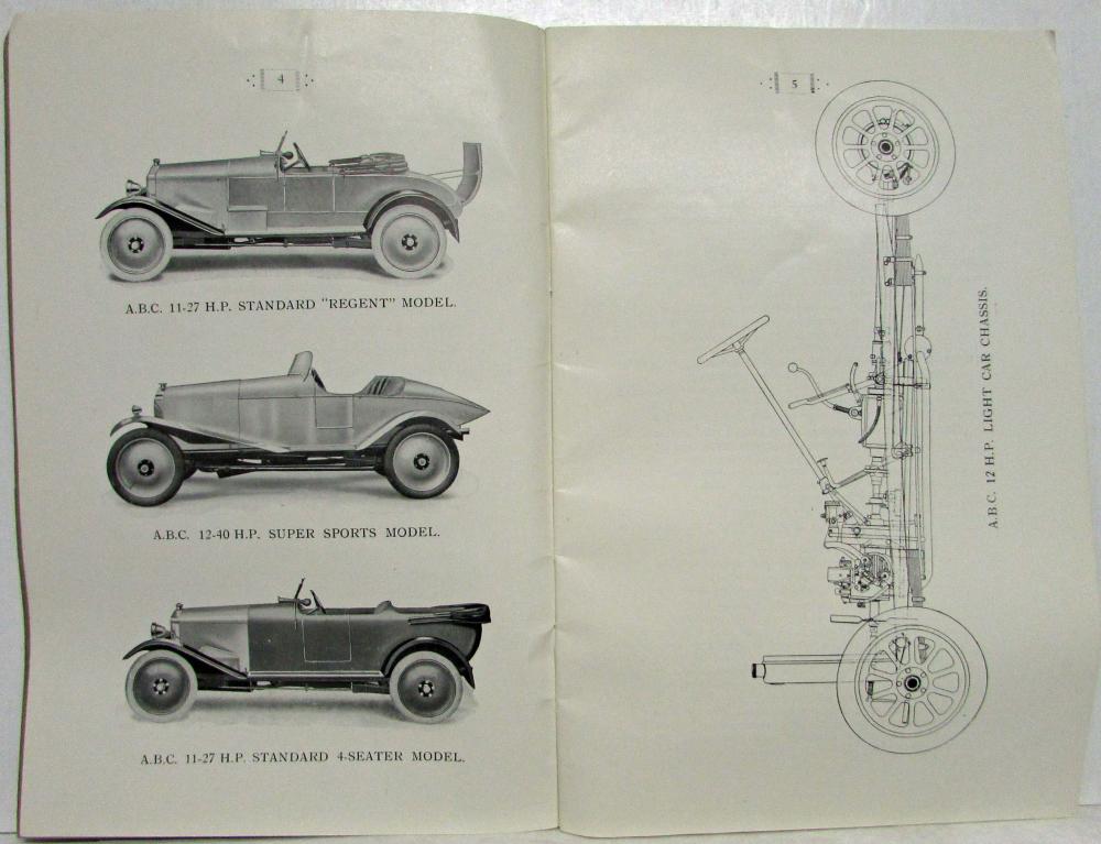 1926 ABC Motors 11-27 HP Light & 12-40 HP Super Sports Car Owner's Manual Handbook. Original.