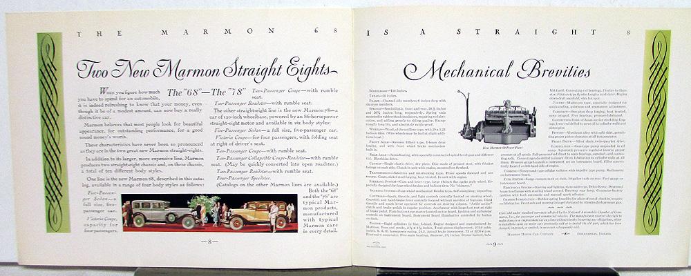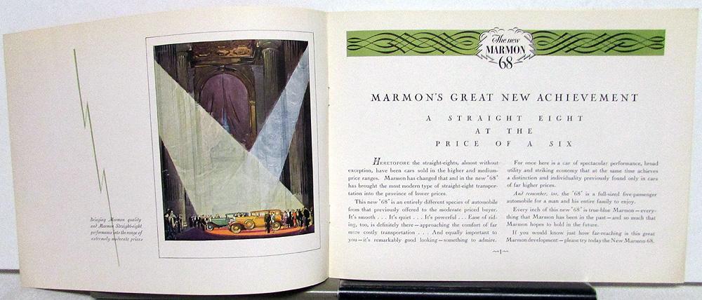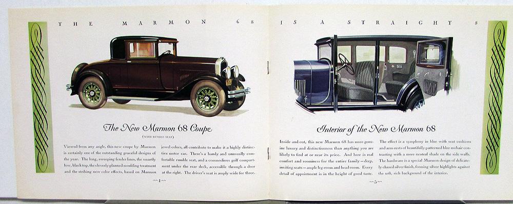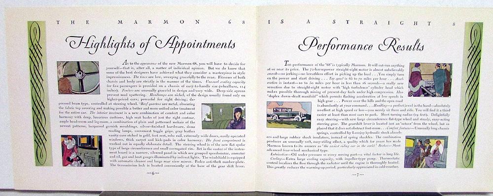 Original 1928 Marmon Dealer Color Sales Brochure. This well illustrated Brochure highlights the Model 68 Cars. It is in good condition for its age with minor wear, soiling and blemishing [see photos]. Very rare and impressive piece of history that will display well.