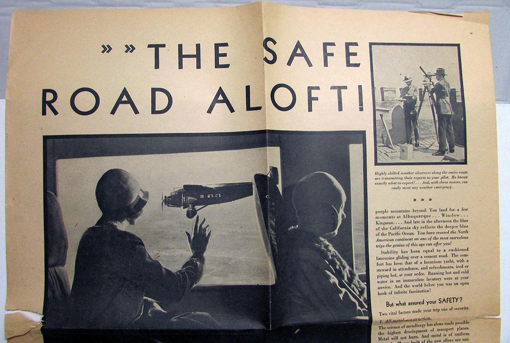 Original 1929 Ford Motor Company Ad Proof. This large Ad Proof would have been sent to Ford by the Magazines or Newspapers that ran this Ad. This Ad highlighted the new Air Passenger Plane Service called Transcontinental Air Transport. This Air-Rail Service featured Ford Tri-Motor Planes. It measures 17" X 21" and is on fragile newspaper style paper. It has moderate wear, blemishing and some discoloration from aging [see photos]. It has some tearing in places and creasing from being folded in half and then once again. Rare and desirable piece will make a cool framed display item.