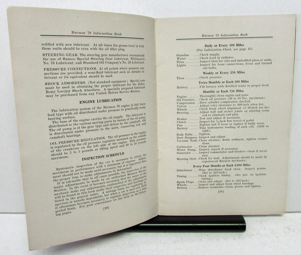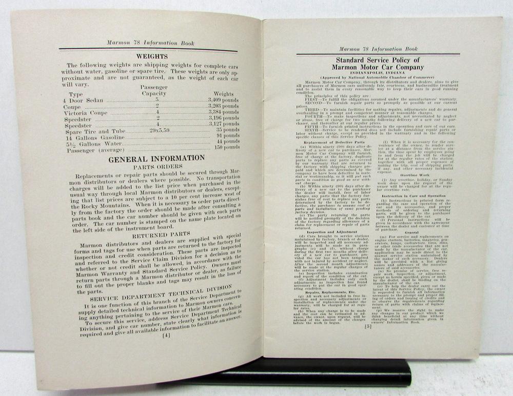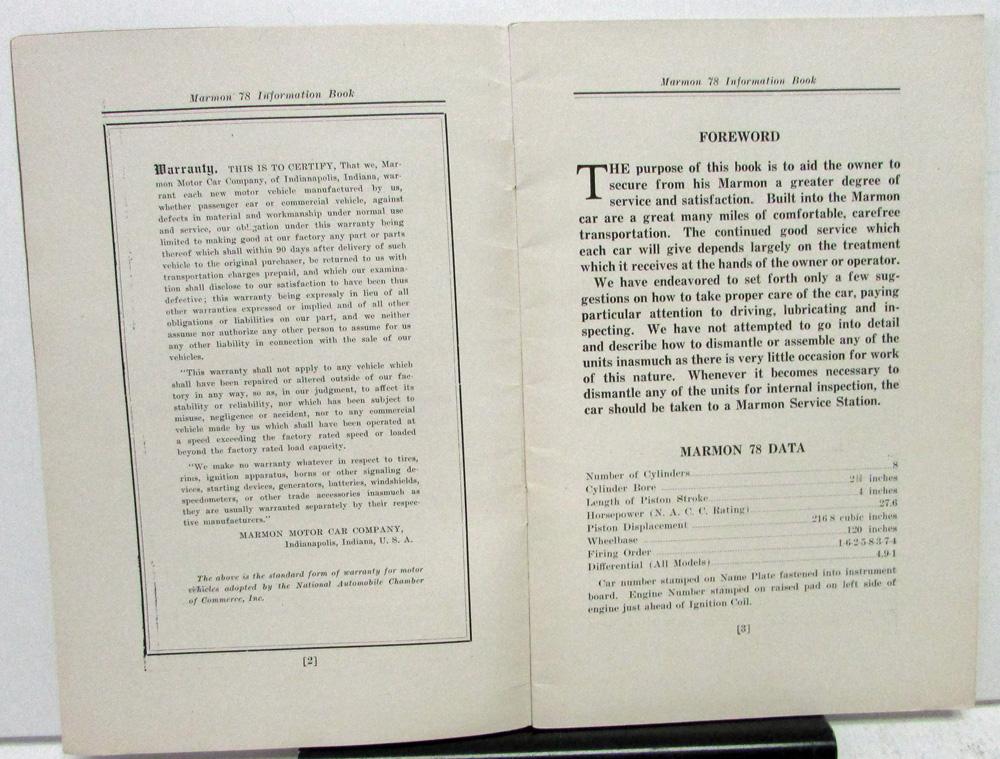 Original 1929 Marmon 78 Owner's Manual. This Care and Operation Book gives information and instructions on the maintenance and operation of these Models. It is in very good condition, with very minor wear. Very rare and informative piece of automotive history that will display well.