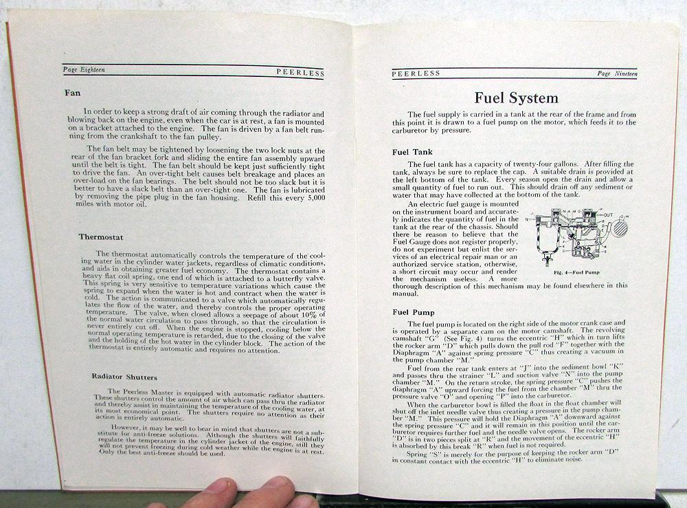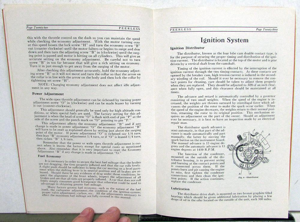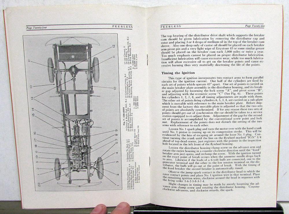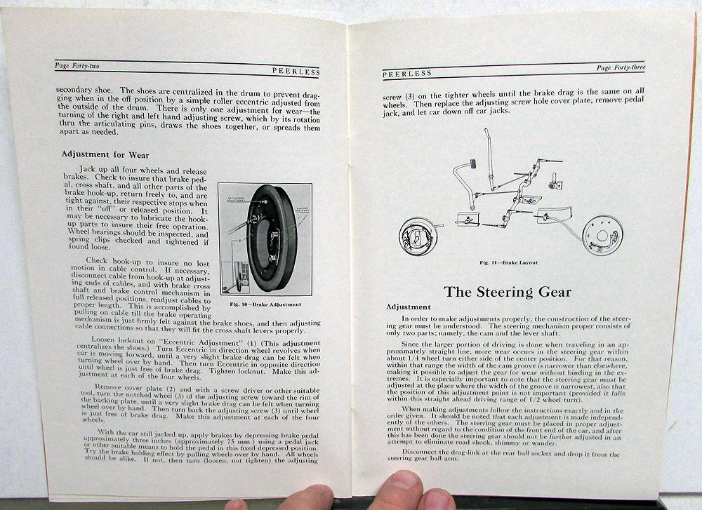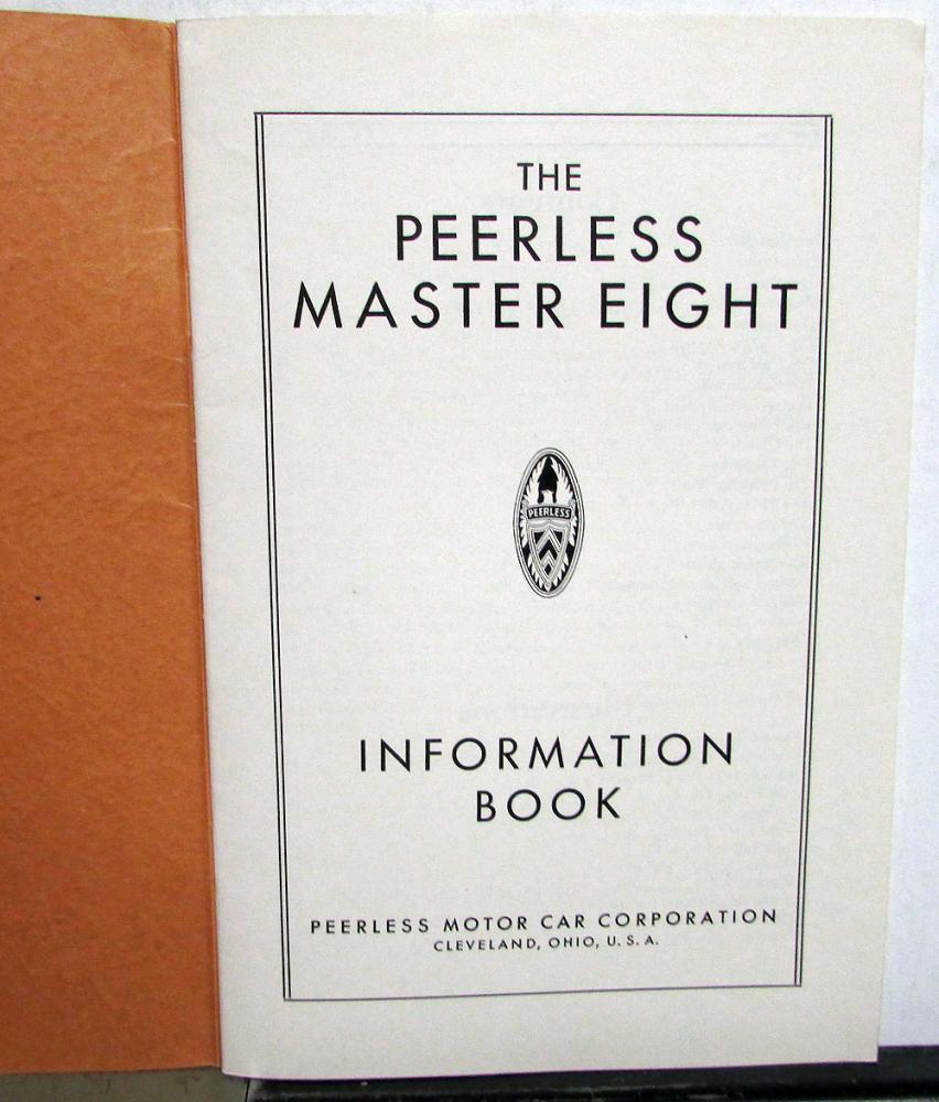 Original 1930-31 Peerless Owners Manual. This Manual gives operation, care and maintenance instructions for the Master Eight Models. It is in very good condition with minor wear and blemishing [see photos]. The front cover has some writing and a stamp on it. Very rare and informative piece of automotive history that will display well.