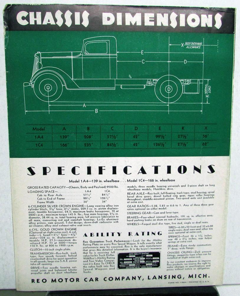 1934-1935 REO Speedwagon 1 1/2 Ton Truck Sales Tri-Fold Brochure. Original.