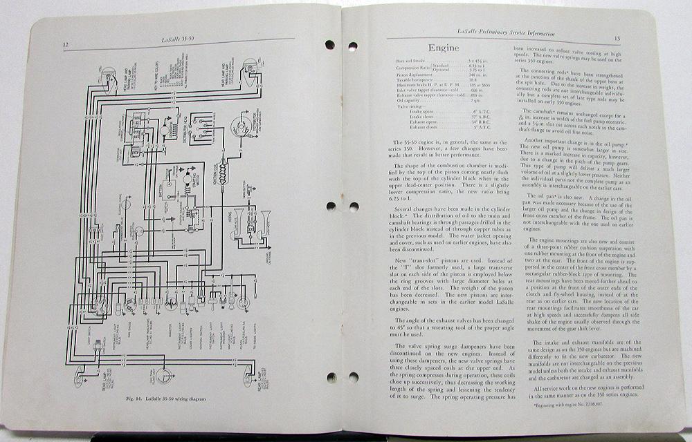 Original 1935 Cadillac-La Salle Dealer Preliminary Service Information Manual. This Preliminary Shop Manual was sent to Dealers to give them Service Information and Procedures Updates for the new La Salle 35-50 Models. These were used until the regular Service Manual was printed. This Manual gave Service Staff the updated information on these models that would have been different from the previous Models. It covers the major components of the La Salle 35-50 Models. It is in good condition with minor wear, blemishing and soiling [see photos].