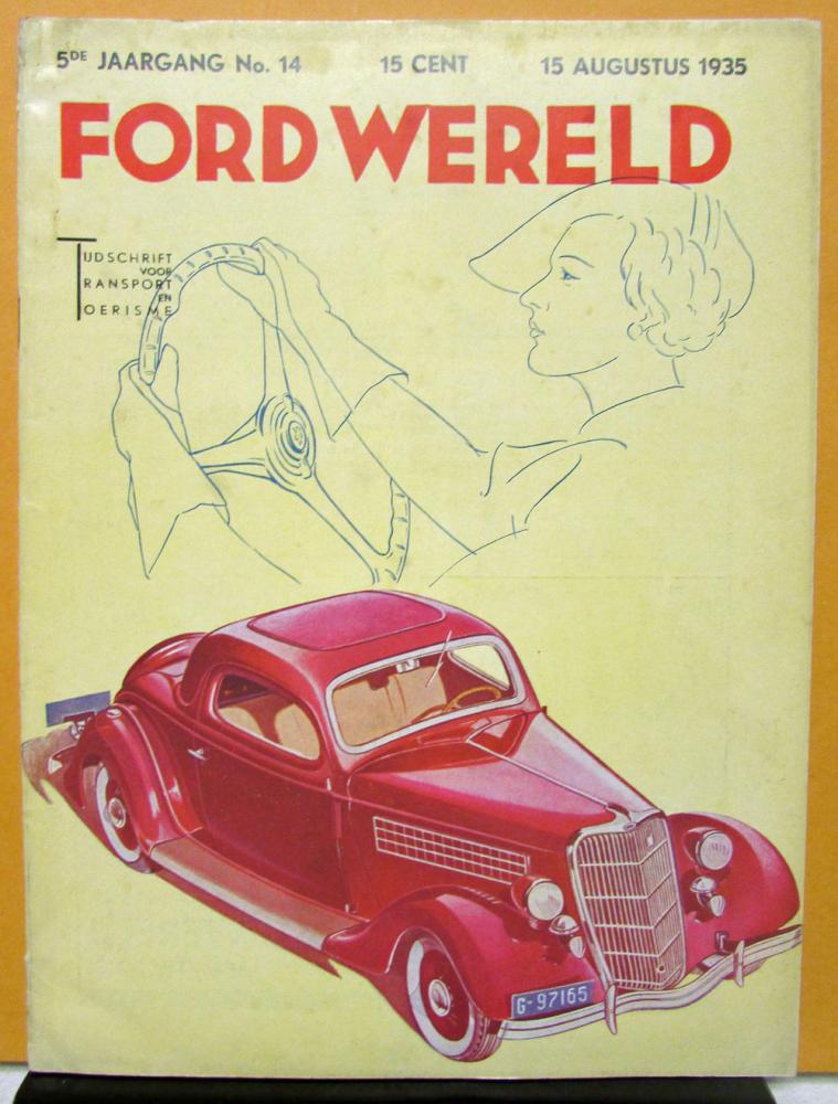 1935 Dutch Text Ford Wereld [World] Industry Magazine, August 15 No. 14 Edition. This Foreign Market Magazine has current Ford News and related Stories for this time period. The centerfold page has a picture cut out of it. Very rare and cool piece of automotive history that will make a great display item. See photos.
