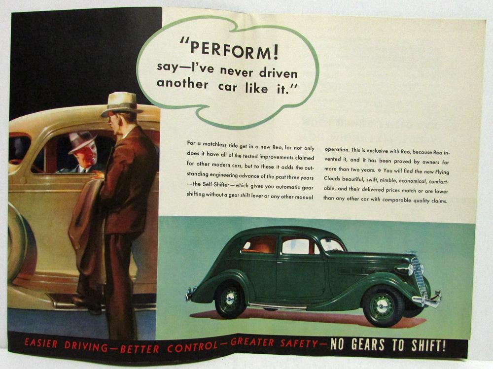 1935 The New REO Sales Folder. Lowest prices in Reo History. REO has all fine car features plus REO Self Shifter. The most beautiful car Reo ever built and the lowest priced $795. Everything you might expect in a much higher priced car. Very good condition.