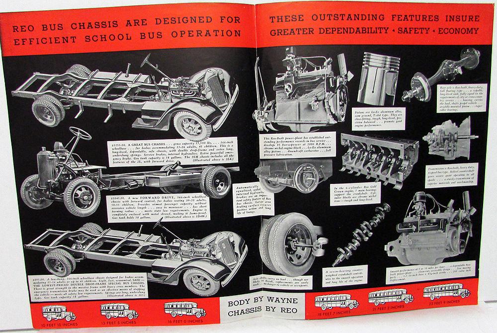Original 1935 REO Dealer Sales Brochure. This Folder highlights the REO School Bus Chassis Options. The back shows Wayne Bus Bodies for REO Chassis. It is in very good condition with minor wear. Very rare and informative piece that will display well.