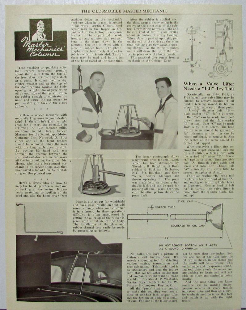 Original, Bulletin I, No. 3 dated February 1, 1936 Oldsmobile Master Mechanic. Covers the grades that are unusually high; total enrollment reaches 7,000. Dobbs GMC Olds Manager expresses appreciation to service mechanics. Master Mechanics' Corner on last page. Bulletin is clean. No tears. There is a crease in the middle.