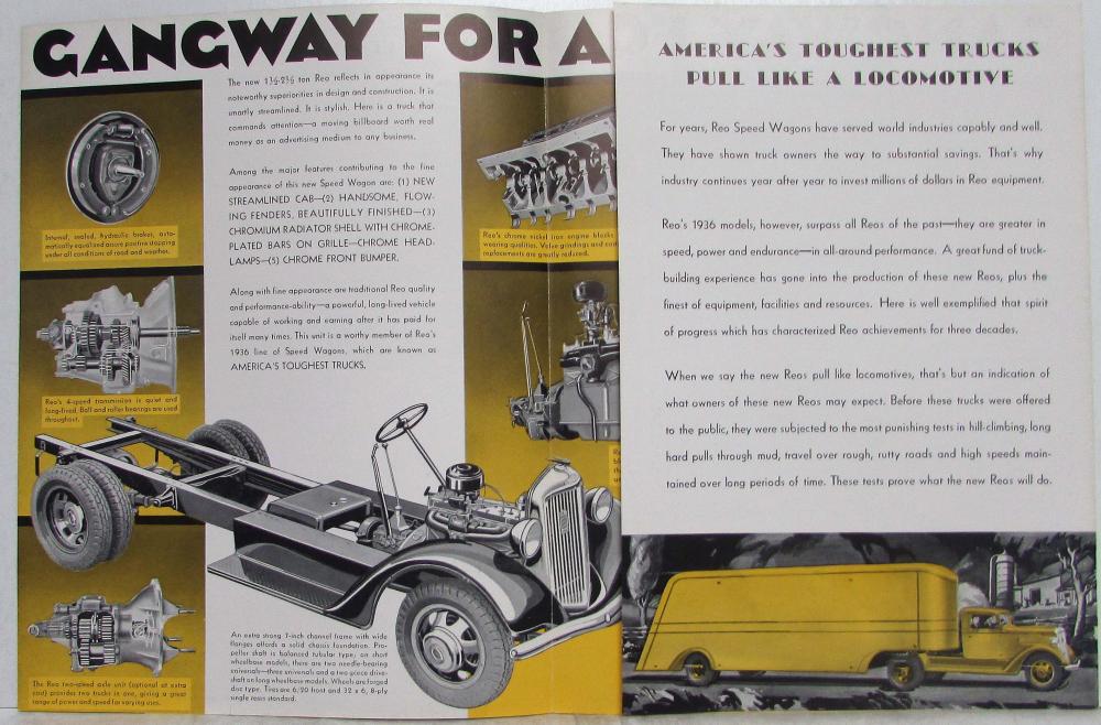 1936 REO 1 1/2 - 2 1/2 Ton Speedwagon Sales Tri-Fold Brochure. Original.