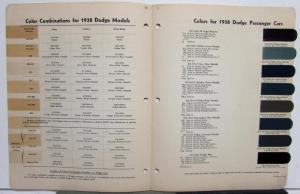 This is a revised color bulletin that features the 1938 Dodge automotive paint chips. It is in good condition, however, does have some signs of wear, etc, see photos for reference. This is a great piece of history and a must-have for any automotive enthusiast!