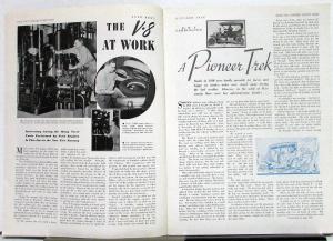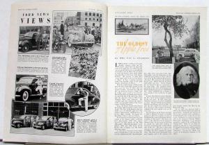 Original October 1938 issue of the FORD NEWS (includes table-of-contents) published by Ford and was sent to current and potential customers with emphasis on Ford vehicles and mostly what Ford is involved in, such as Ford promotion events, Ford's involvement in other countries, vehicle involvement in races (road and competition), Ford's efforts in health and schools, company news of the month, vehicles serving the public, and Ford's overall enthusiasm for moving the country forward. A sampling of contents: light-hearted bits of news, articles showcasing a particular vehicle (new or improved), Fordson Farms, Reminiscences of Menlo Park, oddities, dealership news, places to travel, and special going ons. In good condition, with soiling and wear, all pages are intact. Vol XVIII No 10