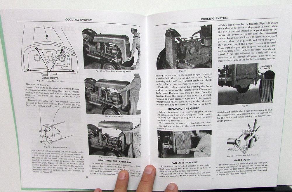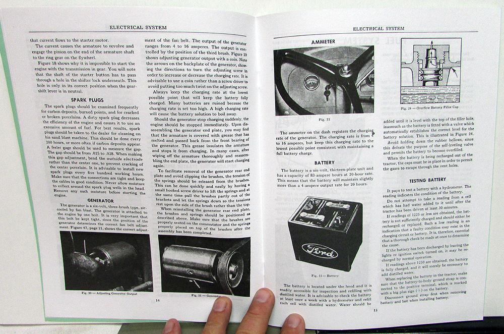 New Reproduction 1939-47 Ford Model 9N & 2N Tractor Service Manual. This Manual gives Information, Care, Adjustment and Repair Instructions for most Components of these Ford Tractors. Very informative and useful piece for the Ford Tractor Owner that will display well [see photos].