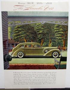 1939 Lincoln V12 ORIGINAL color sales brochure. Features the following with colorful illustrations: Brougham by Brunn, Berline by Judkins, 2-passenger Coupe by LeBaron, 7-passenger Limousine, and convertible Sedan by LeBaron. Specifications on back cover. This Folder measures 9 x 12 and opens to 18 X 24. Form 7115 1-39. It includes the original envelope. Cover of Brochure has some wear, scuffing and discoloration while the inside pages are very good with minor wear [see photos]. Very rare Lincoln piece that will display well.