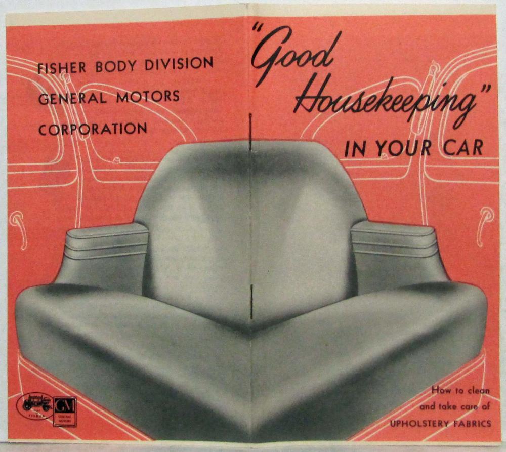 1940 General Motors Fisher Body Good Housekeeping in Your Car Upholstery Care Brochure. Original.
