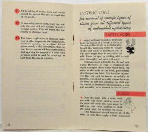 This booklet presents specific methods for the general care of automobile fabrics and for removing spots and stains from the upholstery in your car.