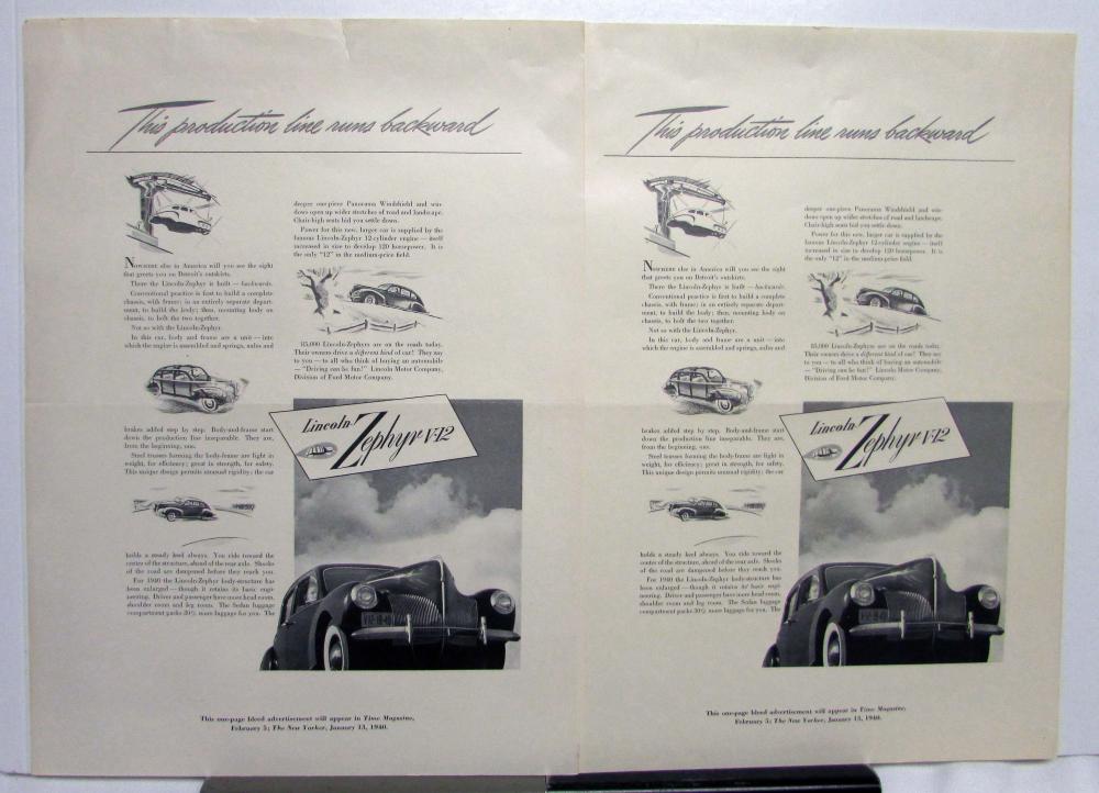 1940 Lincoln V12 Zephyr Sedan Production Line Ad Proof