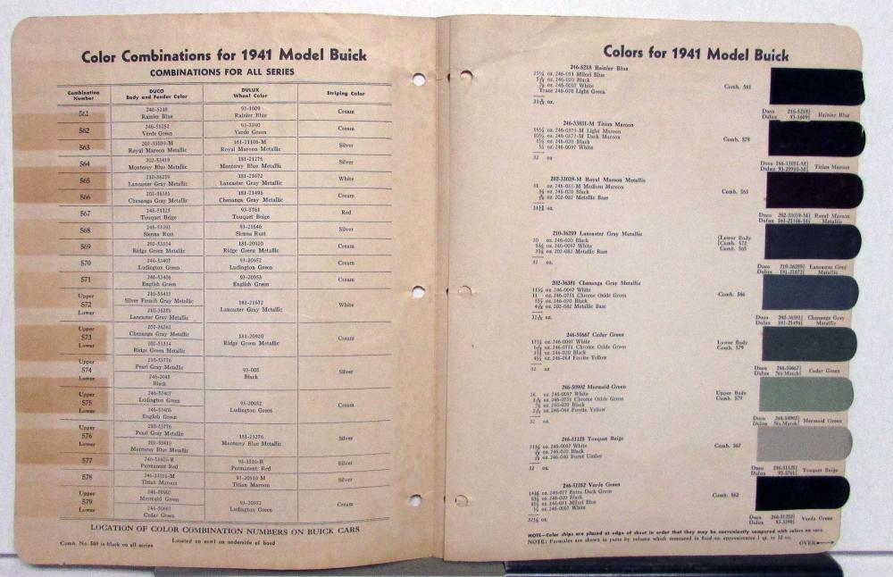 This is an original DuPont color bulletin No 15 that features the 1941 Buick paint chips. It is in good condition, however, does have some signs of wear, etc, see photos for reference. This is a great piece of history and a must-have for any automotive enthusiast!