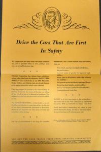 Original, Chrysler "Drive the Cars That Are First In Safety" sheet with text from a talk given during Chrysler Corporation's Major Bowes' Amateur Hour," June 19, 1941. Folded in half.
