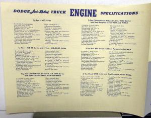 Original, 1941 Dodge Trucks full line sales folder with complete specifications for truck series: WC, WD, WF, WFA, WFM, WFMA, WH, WHA, WHM, WHMA, WK, WKA, WKD, and WKDA. Good condition with minor wear and discoloration.