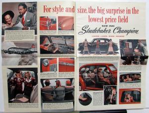 Original, 1941 Studebaker Champion (Custom Club Sedan, Custom Cruising Sedan, and Custom Coupe) original, sales brochure (newspaper style), in color. Read about styling, design, luxury, comfort, power, performance, etc. Color photos and photos of the DeLux-Tone models. This large and beautifully illustrated Brochure is in good condition with minor wear, and discoloration [see photos]. Brochure is creased across middle from being folded.