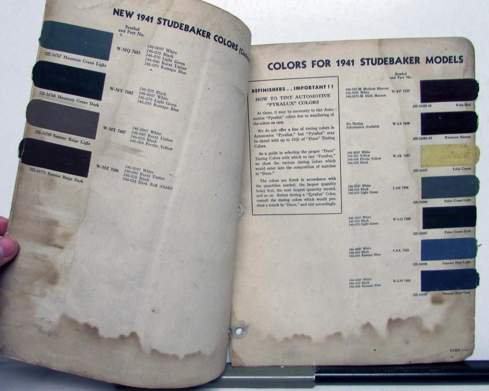 This is an original color bulletin that features the 1941 Studebaker automotive paint chips. It is in good condition, however, does have some signs of wear, the pages are stapled, etc, see photos for reference. This is a great piece of history and a must-have for any automotive enthusiast!