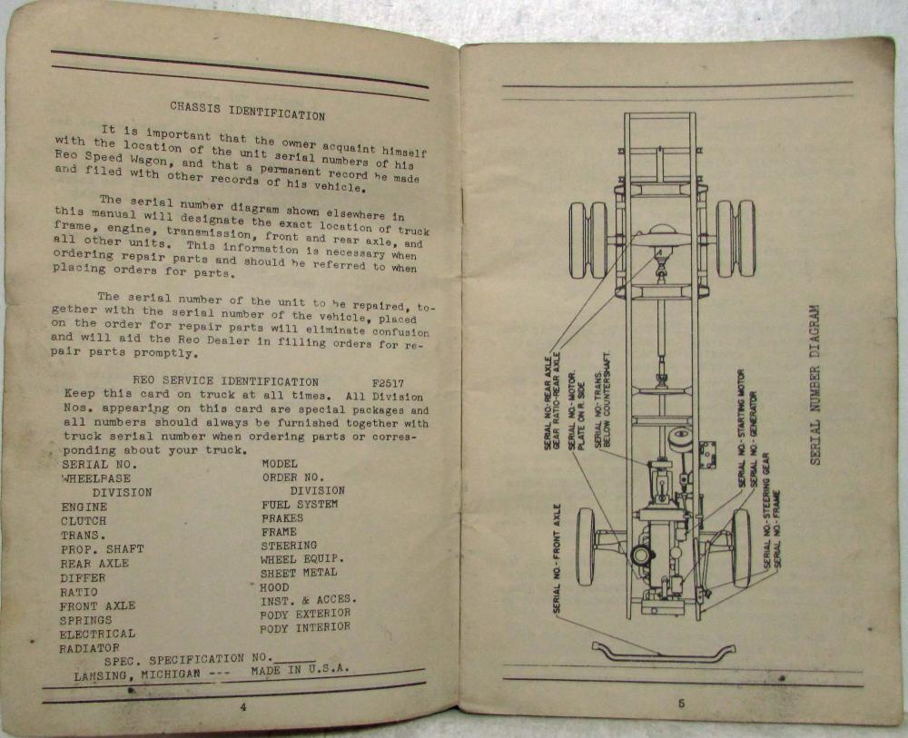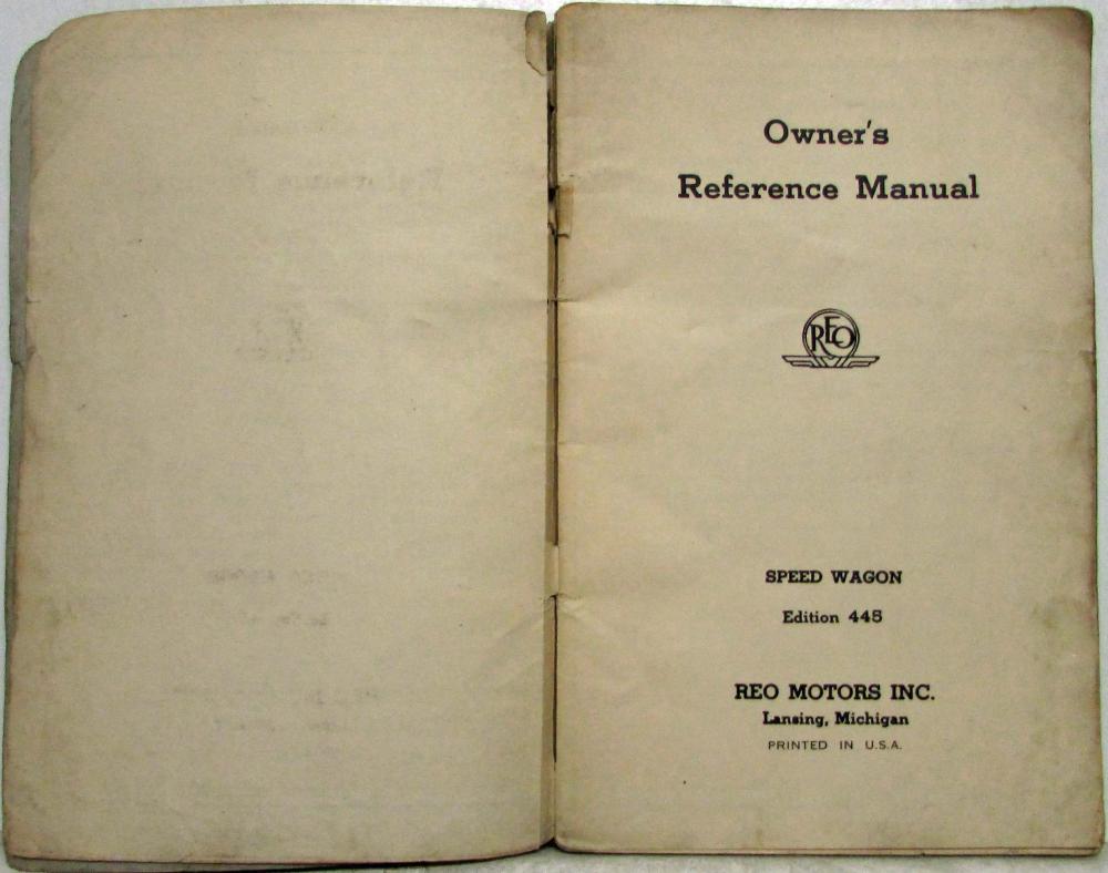 1945 REO Speed Wagon Edition 445 Reference Owner's Manual. Original.
