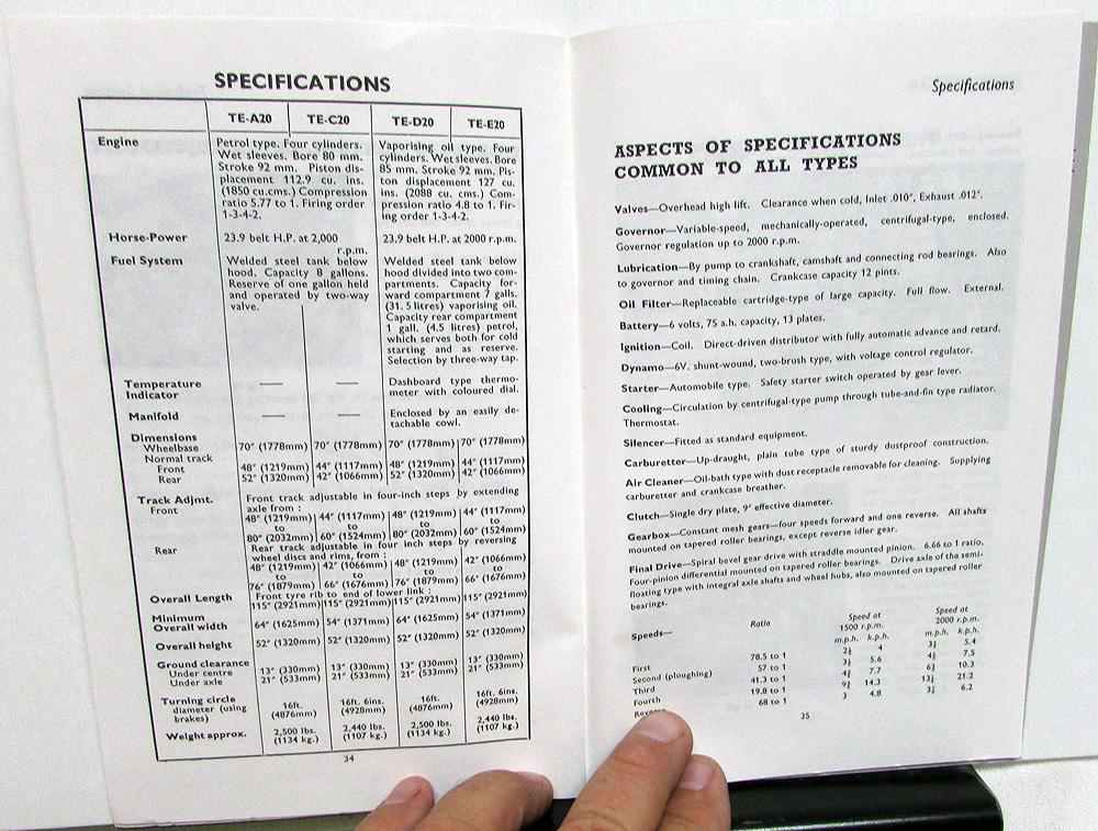 New Reproduction 1948-52 Ferguson Tractor Service Instruction Book. This Owner's Manual gives general Operation, Service and Care Instructions for the TE-A20, TE-C20, TE-D20 and TE-E20 Tractor Models. Very informative and useful tool for the Tractor Owner that will display well [see photos].
