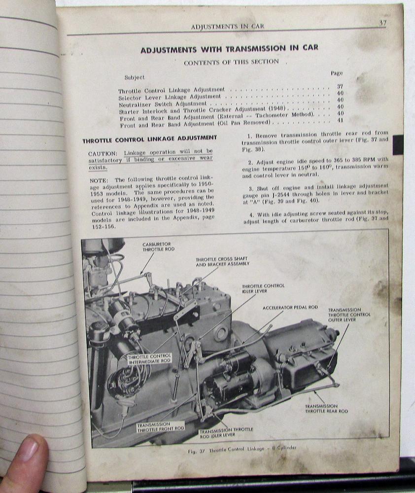 Original 1948-53 Pontiac Dealer Hydra-Matic Transmission Service Manual. This Shop Manual is what the Dealer used to service and repair the automatic transmission in your Pontiac. It has information, specifications, adjustments, troubleshooting, procedures and illustrations to aid in repairing these Transmissions. It is in good condition for its age with normal wear, soiling and blemishing from years of use in a Dealership [see photos]. Very informative and useful tool for the Pontiac Owner.