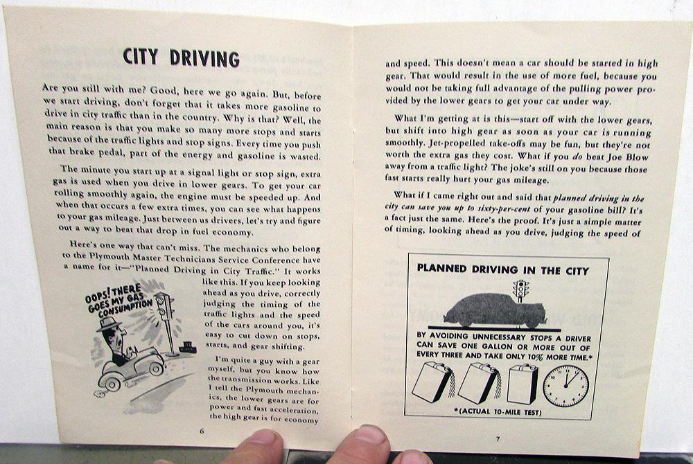 Original 1949 Chrysler Dealer Promotional Handout. This educational brochure gives Fuel Economy tips through planned driving. It is in good condition with minor wear and soiling [see photos].