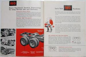 1950 1951 1952 1953 1954 1955 REO Truck Model 226 & 236 Tandems. Front page features a Concrete truck and a caption that states "Increase your Payload". Inside caption states "Here's functional Tandem Engineering for Long Service Life and Economy". Has some brief specifications on back page.