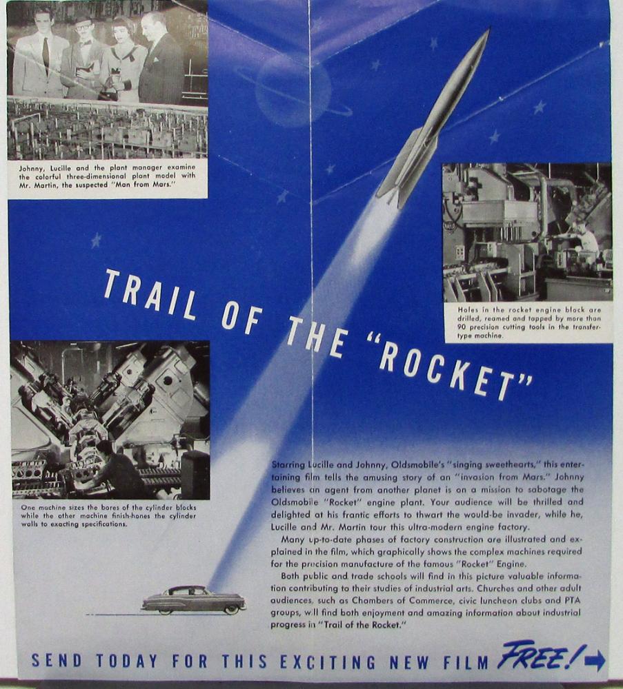 Original 1950's ? Oldsmobile order/folder for a filmstrip with an amusing story which shows modern production methods used in a new automobile plant. Starring Johnny, Lucille, and the man from Mars. Has several creases in the upper left corner.