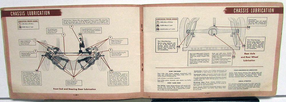 Original 1951 Dodge Models D41 & D42 Owner's Manual. This Care and Operations Manual gives instructions on the use and maintenance of these Models. It is in good condition for its age with some wear, blemishing and soiling. The inside front cover and the back cover have some doodling on them.