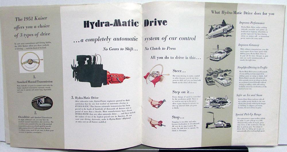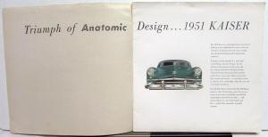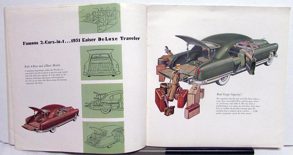 Original 1951 Kaiser Dealer Prestige Sales Brochure. This beautifully illustrated Brochure covers Features, Options and Specifications for the classic 1951 Kaiser Models. Cover has moderate soiling and blemishing while pages are good with minor wear and discoloration [see photos]. Cover is partially torn at top of spine.