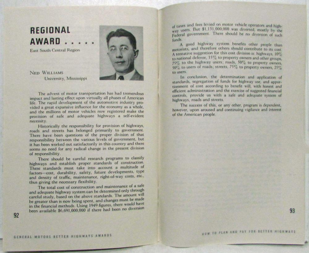 This booklet contains the names of the winners of the national and regional awards in the General Motors Better Highways Awards contest. It also contains full the three national winning essays and summaries of twelve others which won top awards. These, in the opinion of the five judges, were the best of the approximately 44,000 submitted.