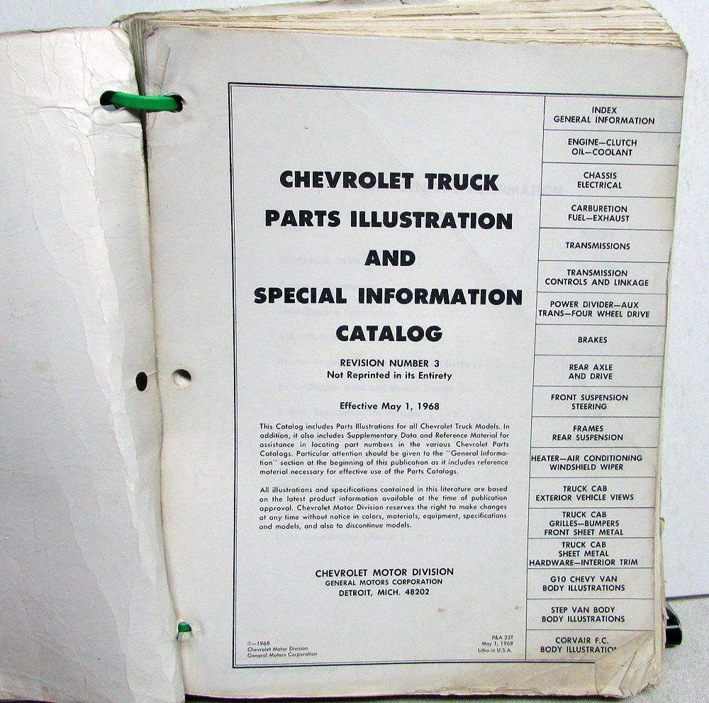 1953-1968 Chevrolet Truck Dealer Parts Illustration and Special Information Catalog. Original.