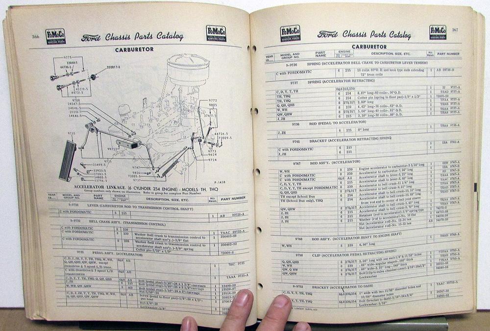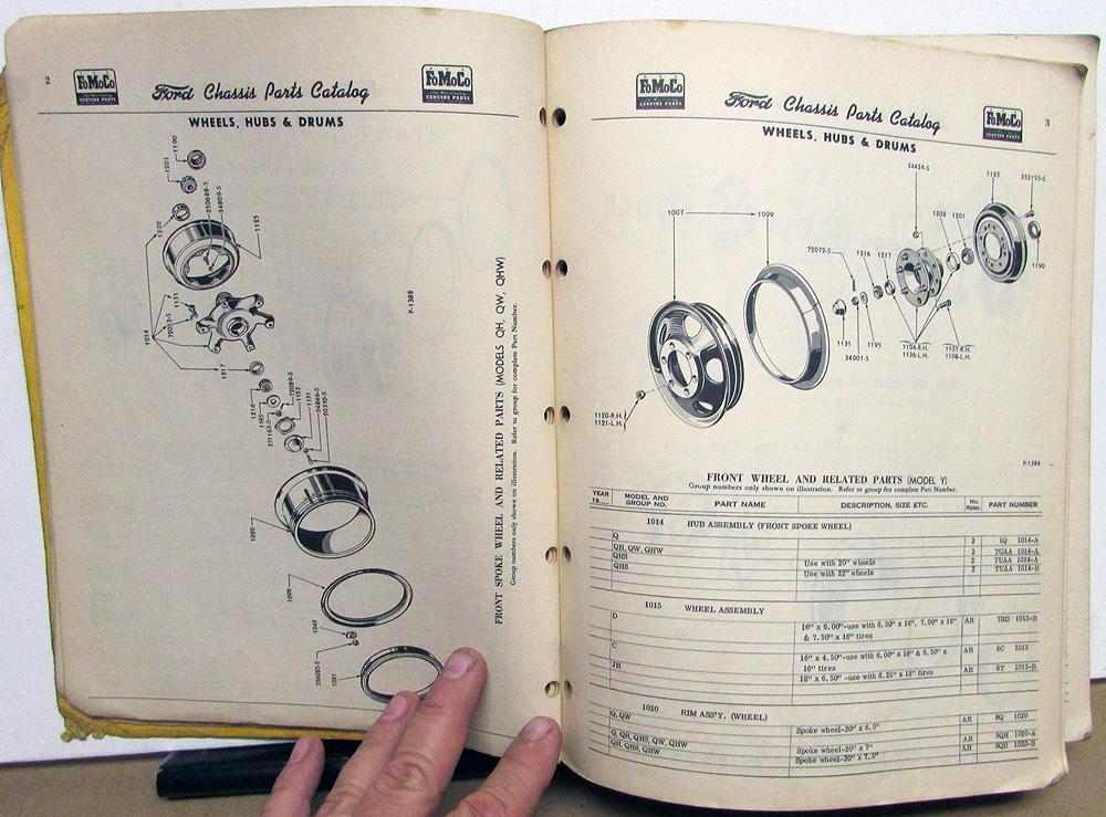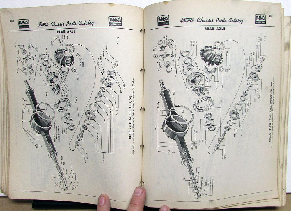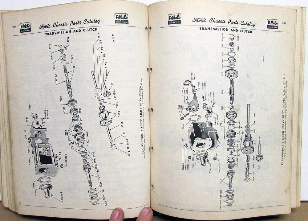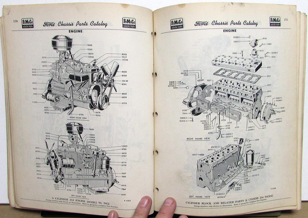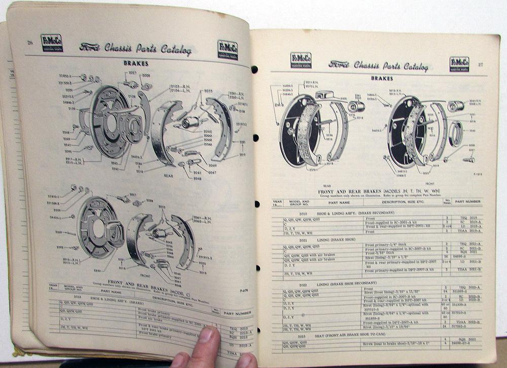 Original 1953 Ford Trucks Chassis and Body Parts and Accessories Catalog, Book. It covers F 100 thru F 900 Trucks [ Conventional, Parcel Delivery, Cab Over and School Bus]. This Parts Book has 556 pages. It covers all of the major components and Accessories of these trucks with diagrams and illustrations along with Part Numbers. This is the book that the Dealership used to maintain and repair these great vehicles . Very useful tool for Collector, Enthusiast or Owner. It is dated March of 1953. Good condition for its age with normal wear, soiling and blemishing from use in a Dealership [see photos].