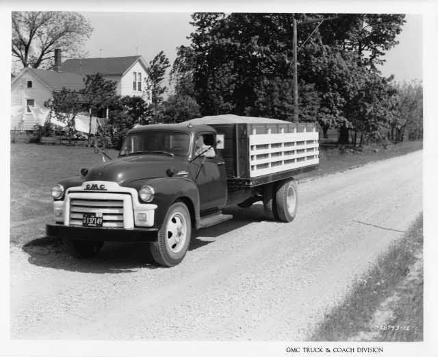 1954 GMC Model 354 24P Stake Truck Press Photo.