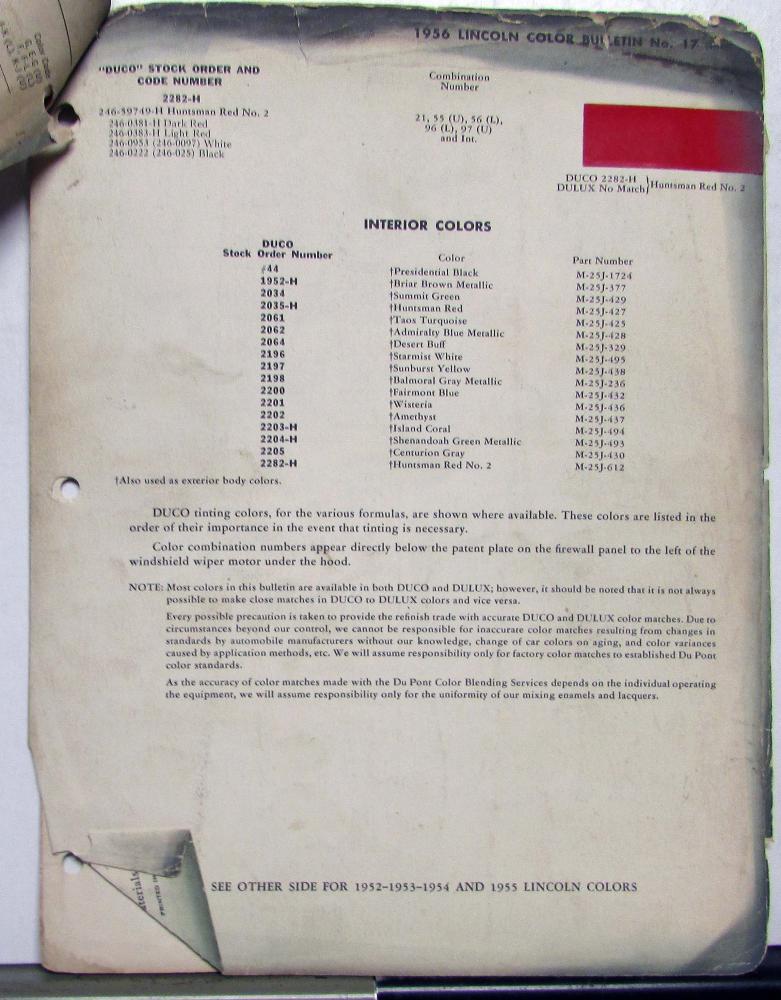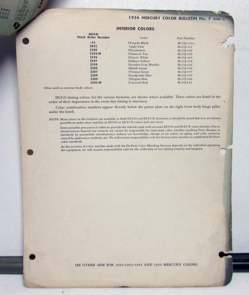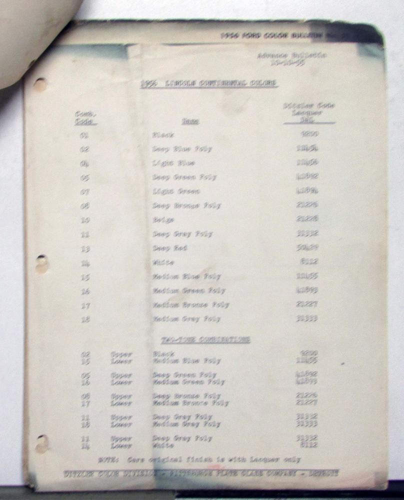 This is an original color bulletin that features the 1956 Ford automotive paint chips. It is in good condition, however, does have some signs of wear, the pages are stapled, etc, see photos for reference. This is a great piece of history and a must-have for any automotive enthusiast!