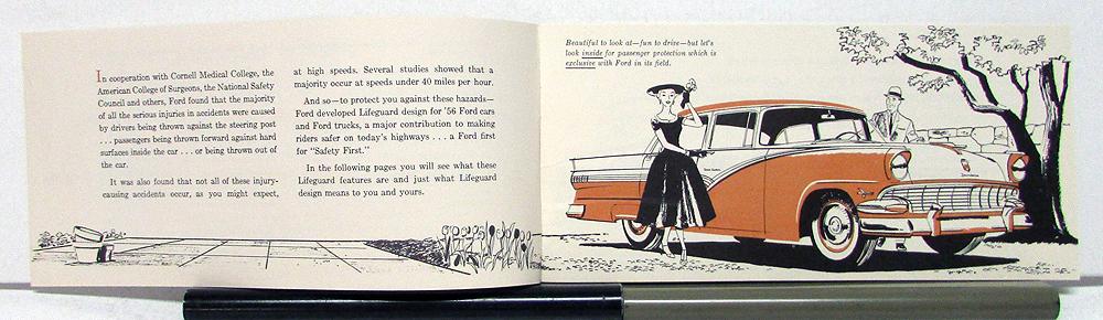 1956 Ford Lifeguard Duty Sales Brochure. This brochure discusses some of the safety features of the ford and has illustrations of the Fairlane and Country Sedan. Some of the safety features discussed: