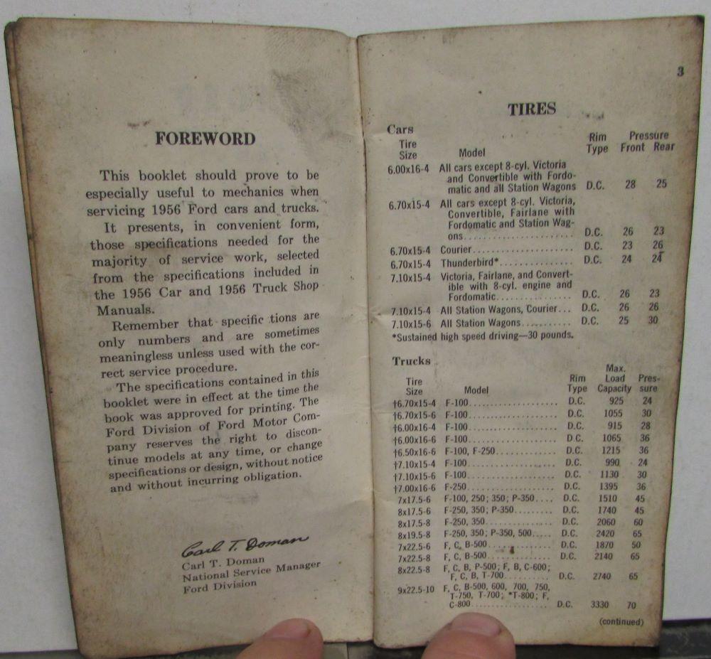 Original Ford Service Specifications for Passenger Cars & F Series Ford Trucks. This is an item that is ofter overlooked, but it contains many facts not found in the owners manual or service manual. Contians