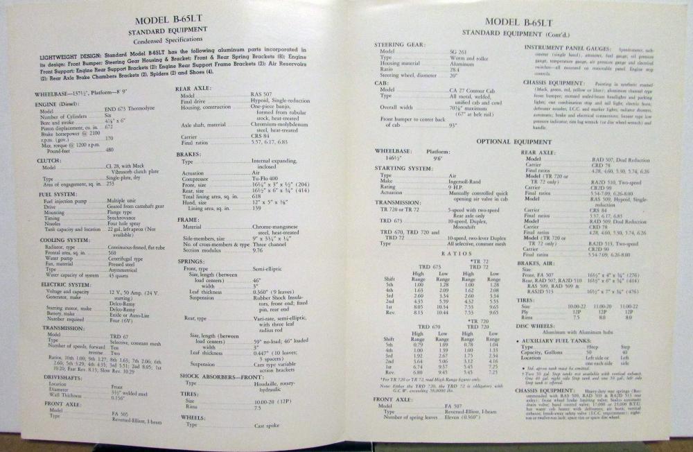 This original sales brochure for the B-65LT Mack Truck is in excellent condition and highlights the models' standard equipment, optional equipment, dimensions, and more. This brochure would make a great addition to any collection!