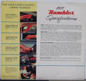 Original, 1957 American Motors Company (AMC) Rambler, color, sales brochure which opens to poster on both sides. Good condition with minor wear, discoloration and a Dealer Stamp on back cover [see photos].