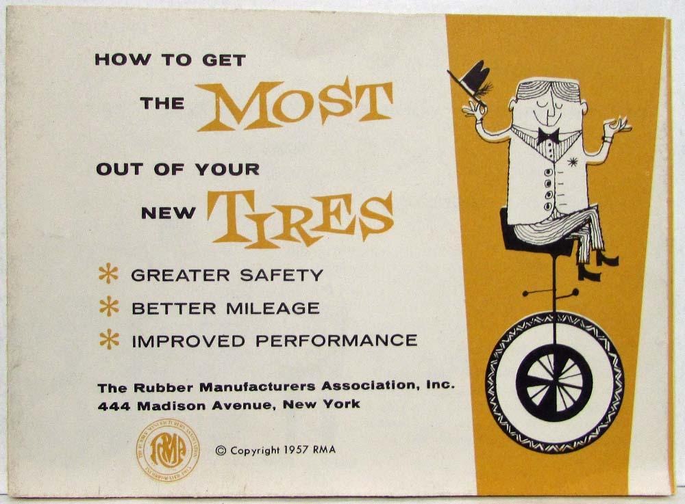 1957 How to Get the Most Out of Your New Tires Folder from the Rubber Manufacture Association, Inc. Original.