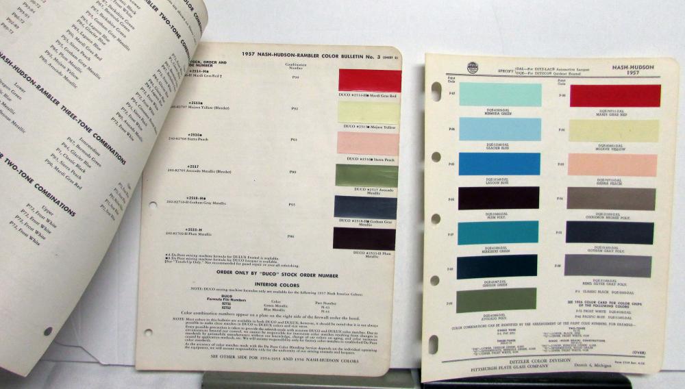 This is an original set of 1957 paint chip sheets for Nash featuring the Rambler and Hudson. This was made to easily present nice color availability, ordering codes, coloring options, and more to the consumer. This is in good condition, however, might have some signs of wear or age, see photos for reference. This is a great piece and would make a great addition to any collection!