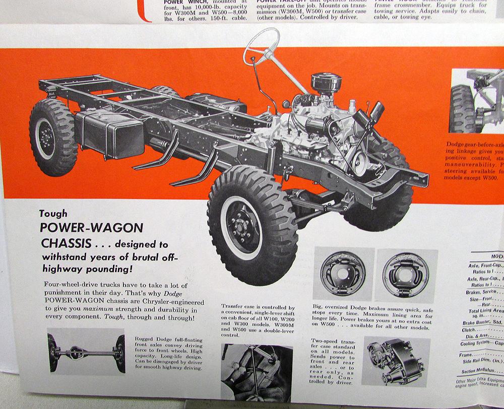 Original 1958 Dodge Truck Dealer Color Sales Brochure. This beautifully illustrated Folder highlights the Features and Specs of the W100, W200, W300 and W500 Power Wagon Models. It is in good condition with minor wear and blemishing [back cover has some soiling/discoloration]. Very rare piece of Dodge Truck history that will display very well.