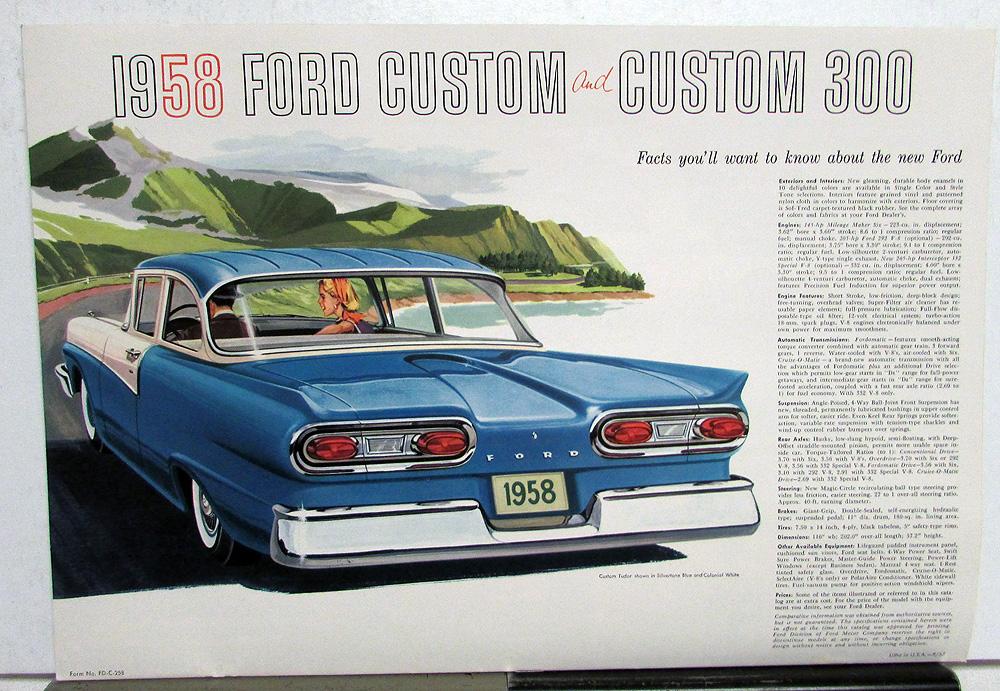 1958 Ford Custom 300 Series XL Color Sales Brochure. Original. Dated 9/57.
