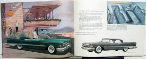 1959 Chrysler original, color, sales brochure for the Imperial including Custom, Crown, Lebaron, Southampton and convertible. Colorful illustrations including specifications and some features. Good condition with minor wear and discoloration [see photos]. The front and back covers have a Dealer Stamp.