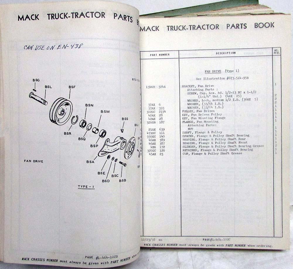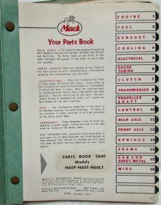 1959 Mack N60P, N60T and N60LT Model Truck Parts Book. Parts Book #2645. Original.