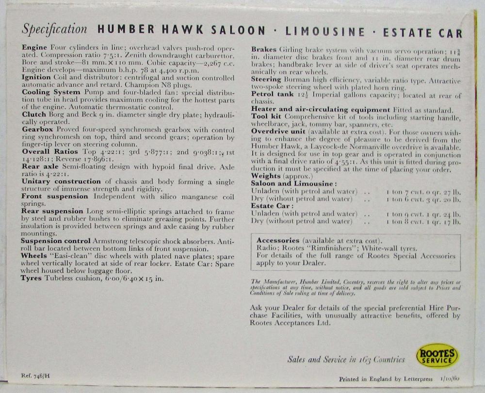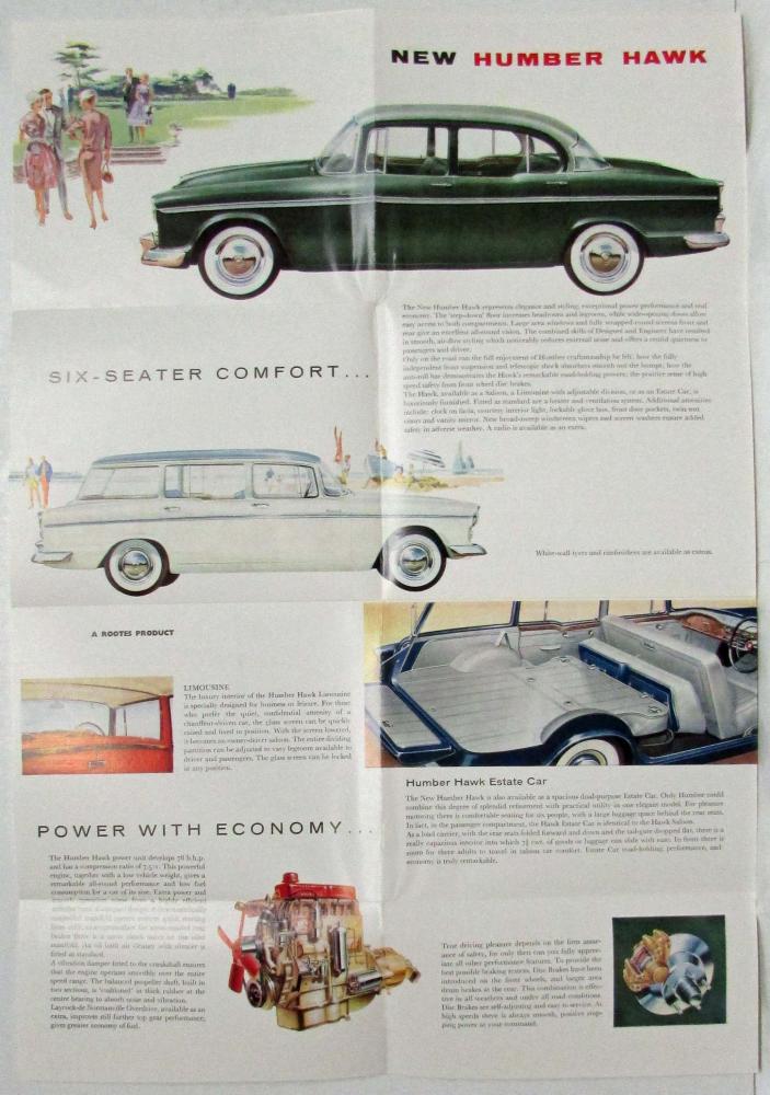 1960 Humber Hawk Small Sales Folder - Saloon, Limousine, Estate Car. Original.