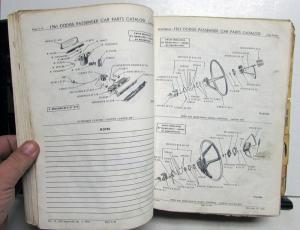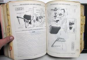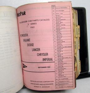 Original Pair 1960 Mopar Dealer Parts Books in one original Binder. The first Catalog is for 1961 Dodge, Lancer and Dart Passenger Cars, Dated October, 1960. The second Parts Catalog is for 1961 Plymouth, Valiant, De Soto, Chrysler and Imperial Passenger Cars, Dated September, 1961.These Dealer Parts Books contain Part Numbers, Descriptions and some Illustrations. These are what the Dealership used to order new Parts to repair your vehicle. These contain all of the Repair and Replacement Parts that were available from Mopar at the time of the Printing. The Binder is in good condition with minor wear and blemishing. The pages are in good complete condition with normal wear and soiling from use in a Dealership [see photos]. Very useful tool for the Mopar owner or Collector. Very rare and informative piece of automotive history that will display well.